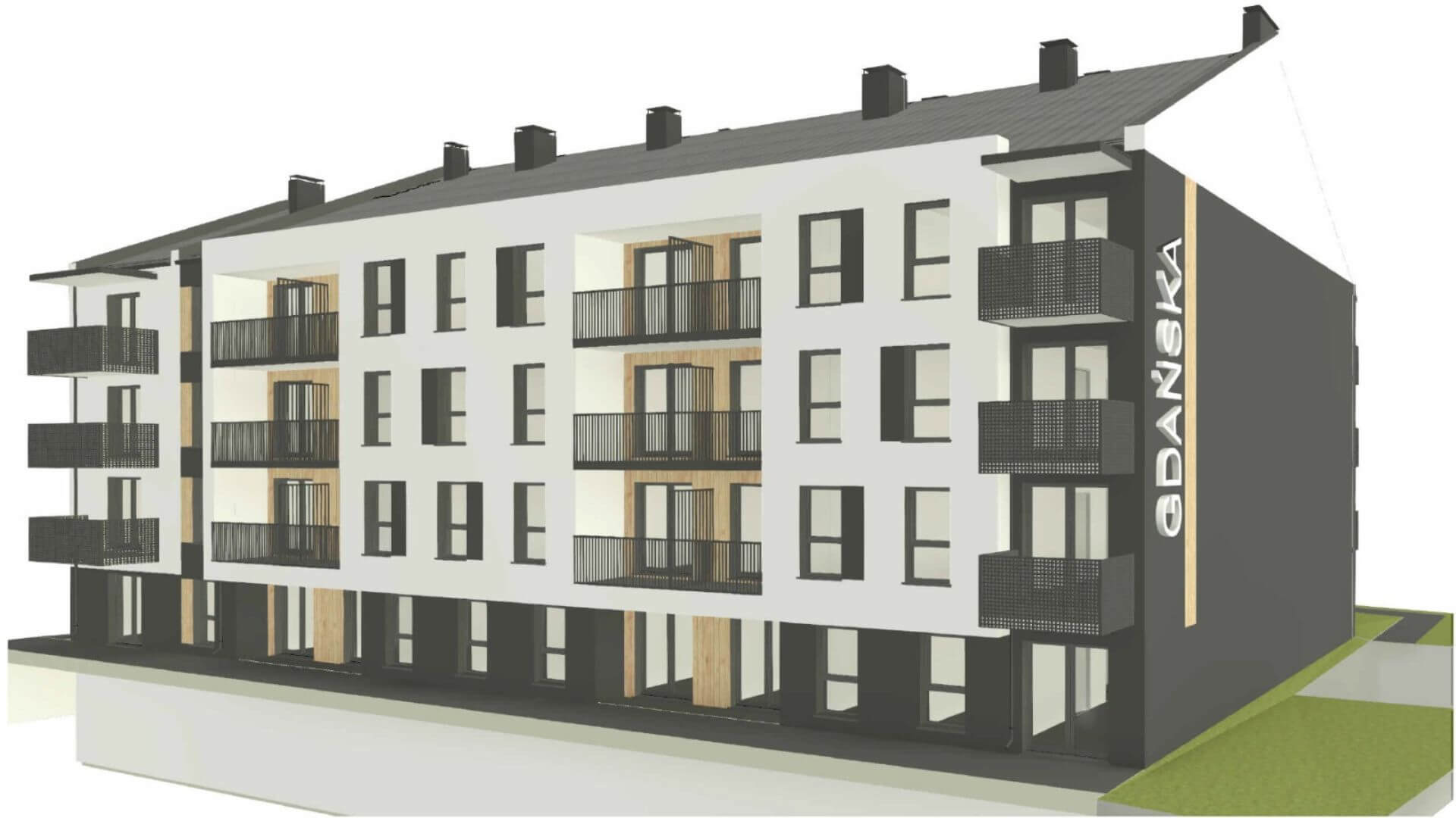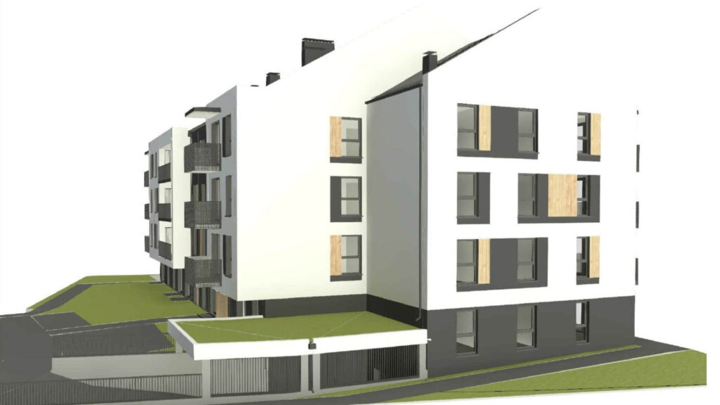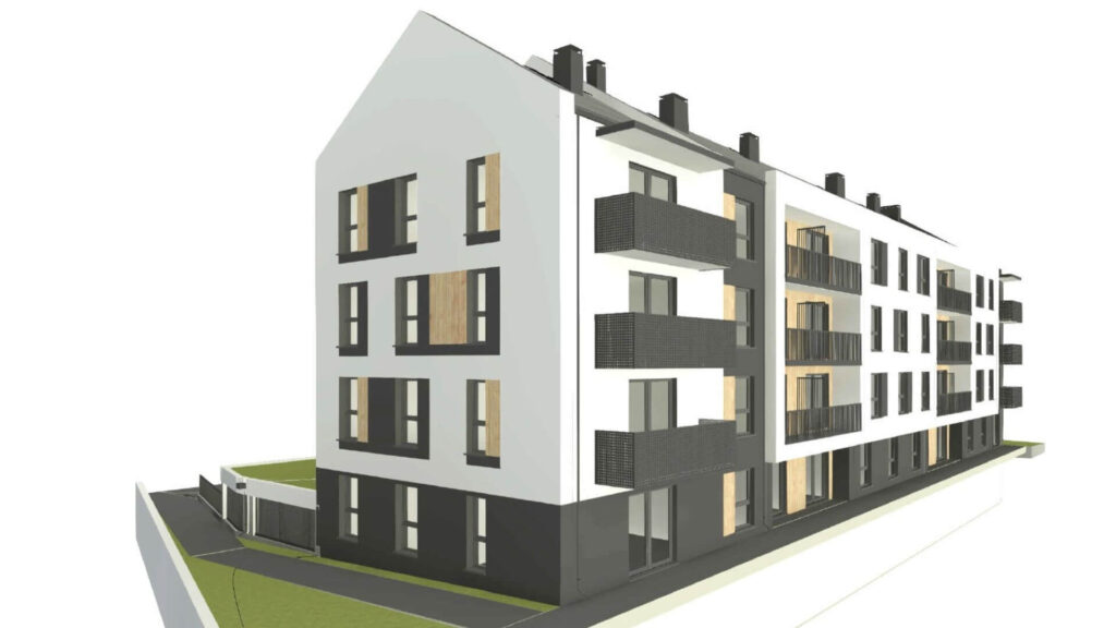 Prosta i przejrzysta forma architektoniczna, która wpisuje się w aktualne trendy budownictwa wielorodzinnego.
